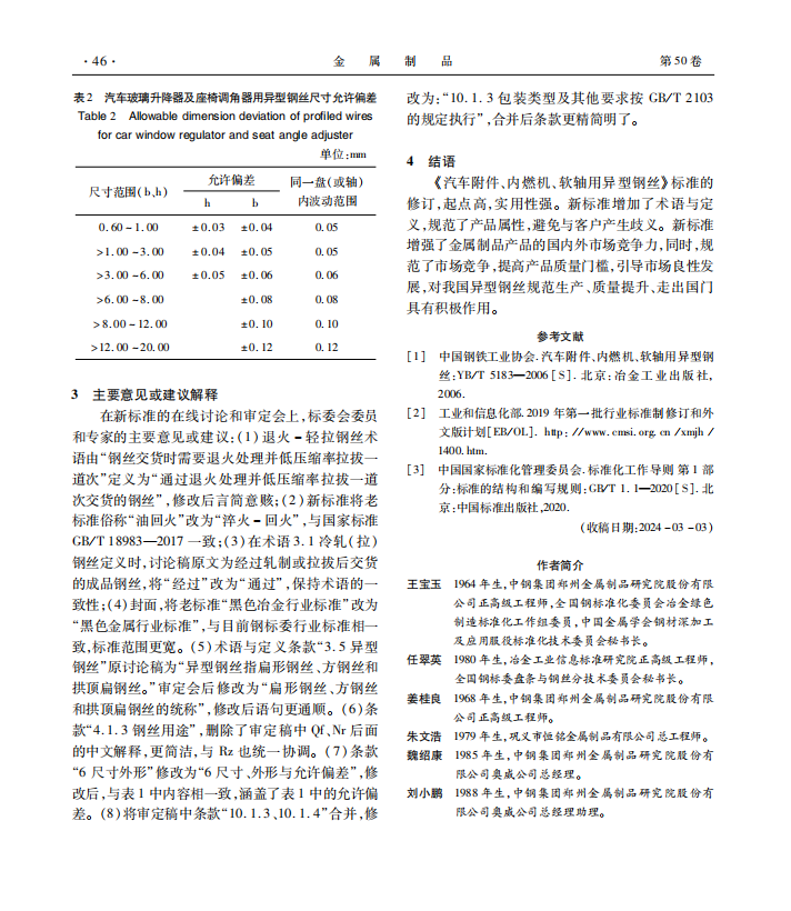 YB/T 5183-2023《汽車附件、內燃機、軟軸用異型鋼絲》